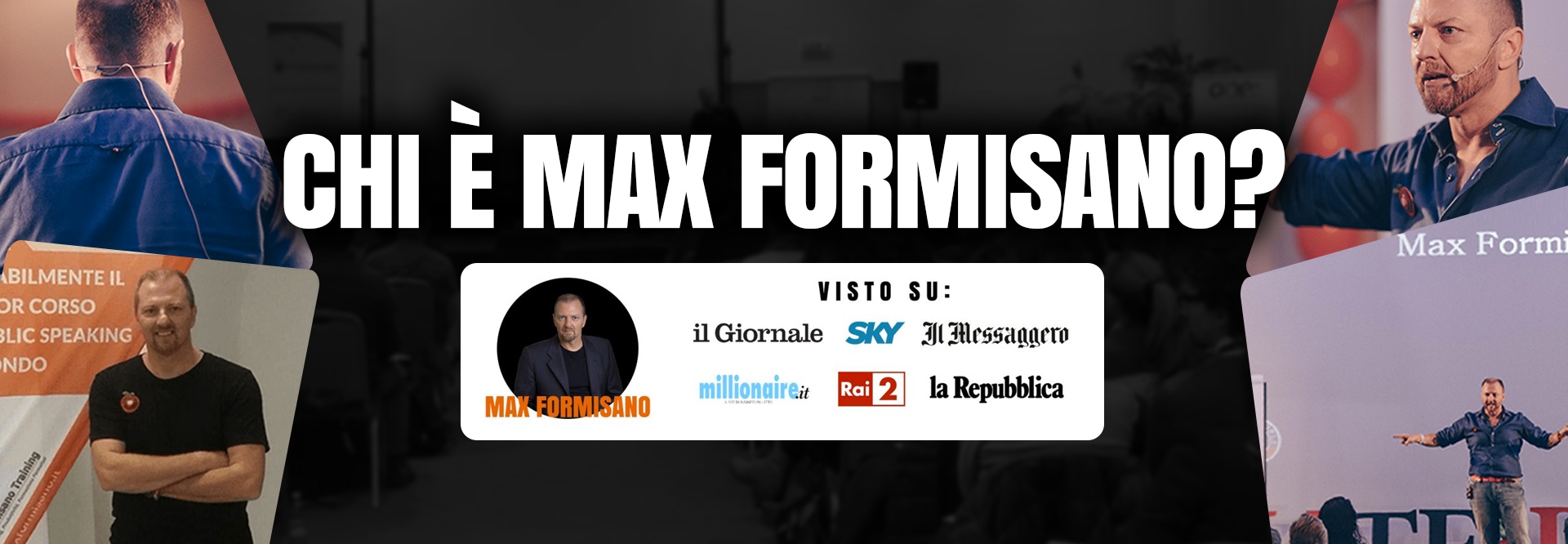 Dopo 25 anni di esperienza nell’insegnare a parlare in pubblico con efficacia, Max Formisano ha deciso di riversare il suo sistema in un programma di implementazione che permetta davvero a chiunque di praticare costantemente il public speaking senza stress, anche se non si ha molta esperienza (o peggio, esperienze traumatiche).